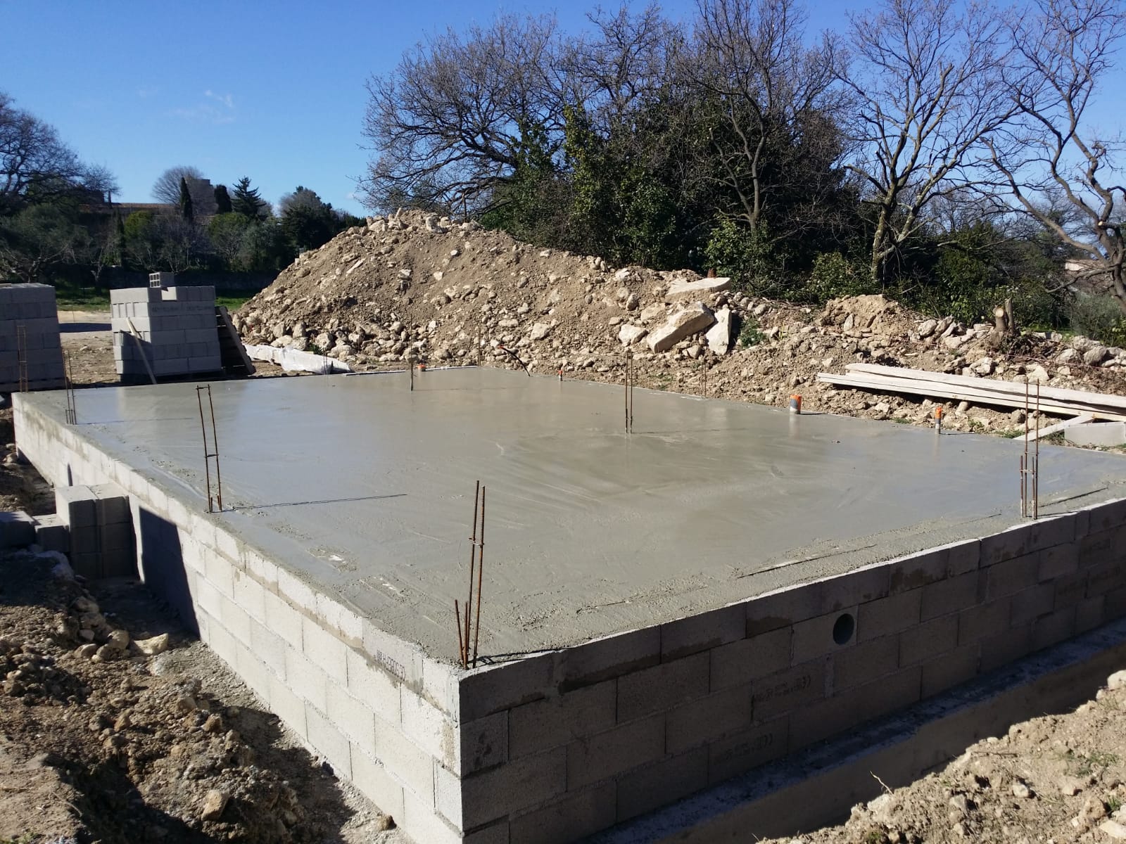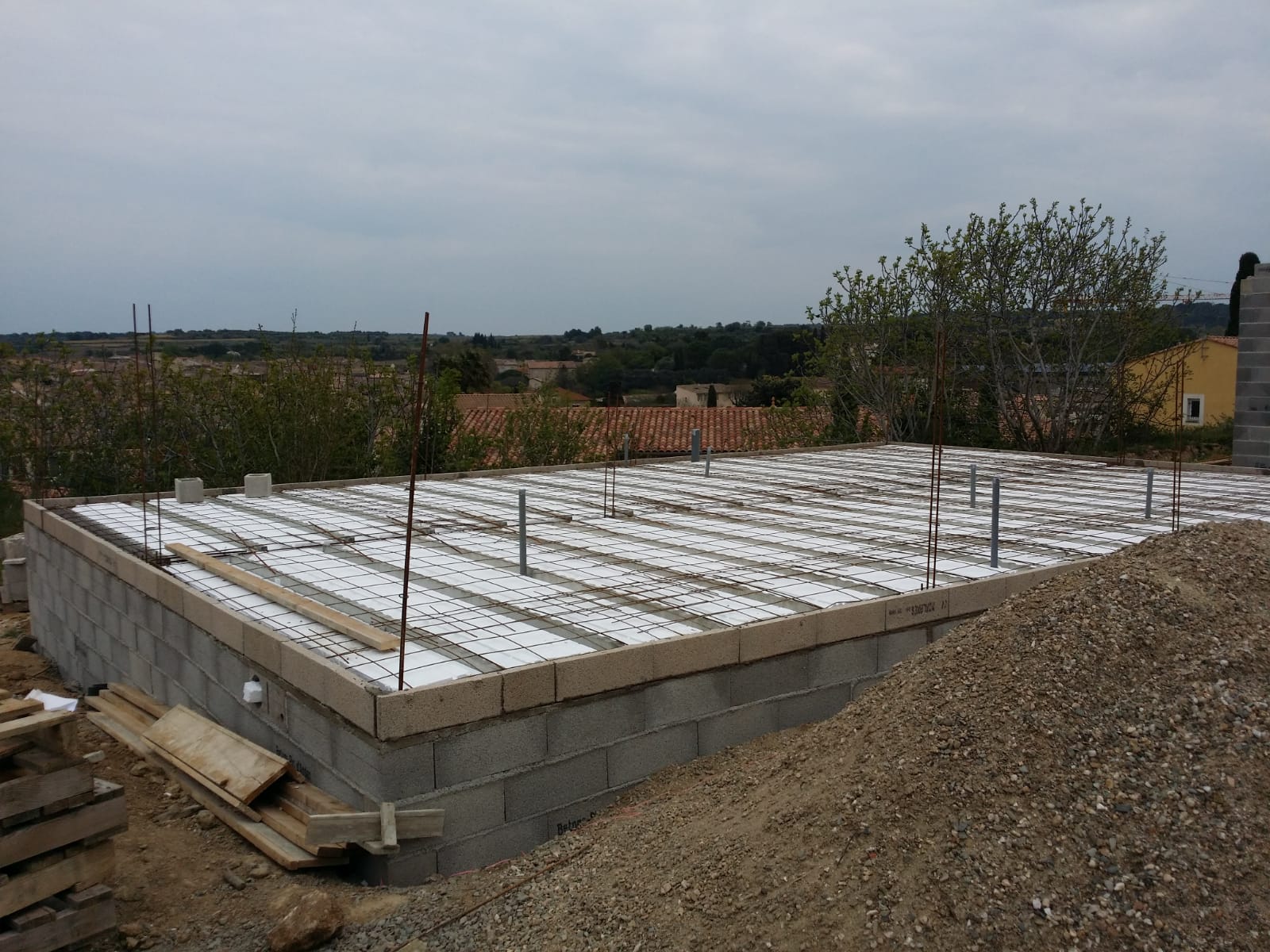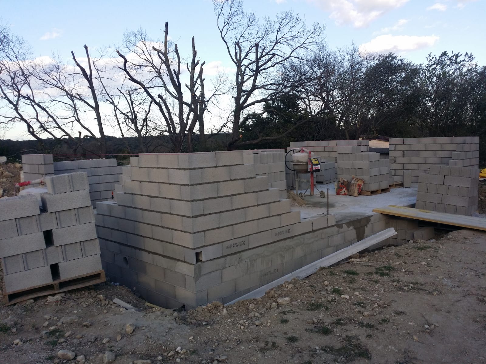 Maison avec murs banchés ou parpaing,